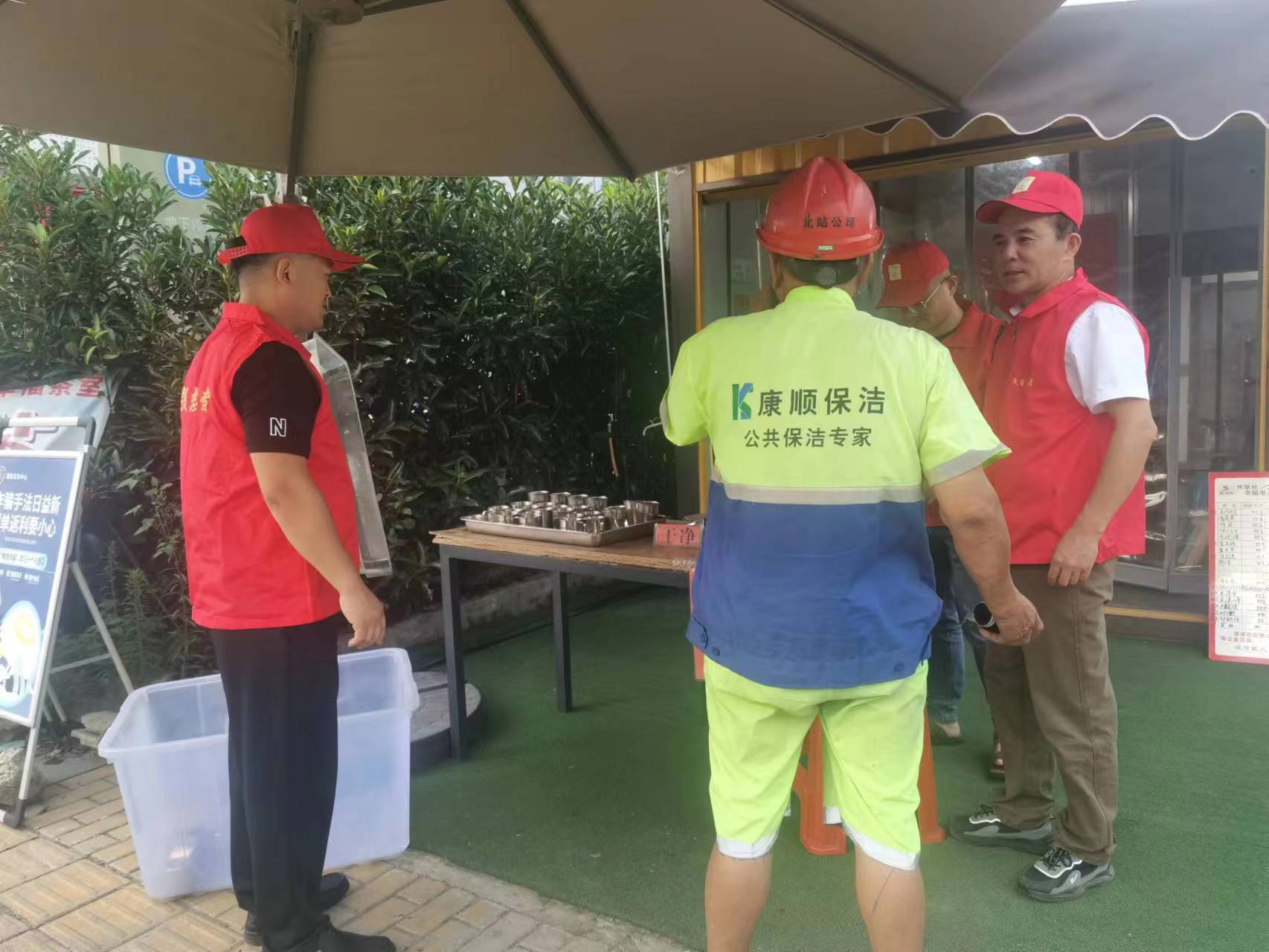 當日,志愿者們將煮好的涼茶統(tǒng)一進行盛放到經(jīng)過高溫消毒的杯子里面,為了讓大家能夠喝到真正清涼的涼茶,志愿者們提前將盛放好的涼茶逐一進行冷熱分類,方便大家及時飲用。對于高溫環(huán)境中的戶外工作者,比如環(huán)衛(wèi)工人、外賣小哥等,志愿者們更是積極熱情地端上涼茶遞給他們,同時將其水壺、水杯等都加滿,讓他們真正的能夠在炎炎夏日感受一份清涼。