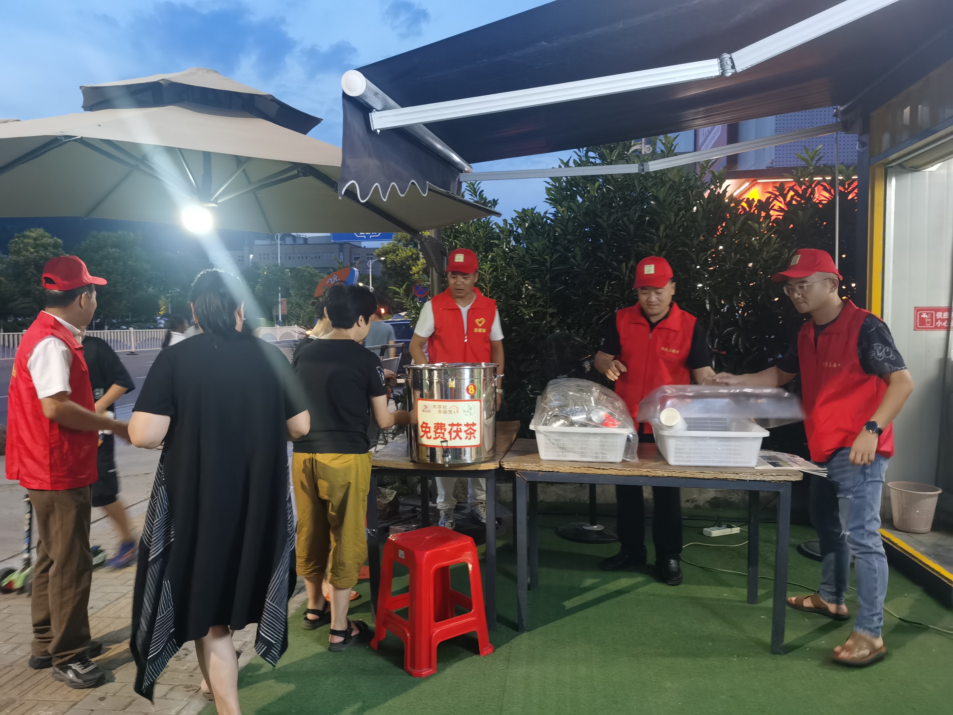 2023年6月29日下午18:00,小飛俠聯(lián)合支部在老黨員陳國軍等的帶領下,入黨積極分子陳娟,孫偉,周強參與了橋下幸福茶室公益茯茶點的夏季免費送涼茶的志愿者活動,為過往的百姓群眾送上清涼解毒,甘甜解渴,防暑降溫的特制涼茶。